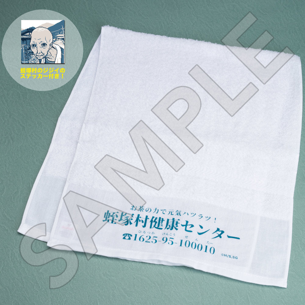 蛭塚村の入り口で佇んでいたあの「ジジイ」が首にぶら下げていた使い勝手のよさそうな万能タオルをイメージ!さらに「蛭塚村のジジイ」のステッカーももれなく付属!